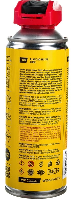 Смазка проникающая адгезионная с дисульфидом молибдена WOG WGC0330 аэрозоль 520мл