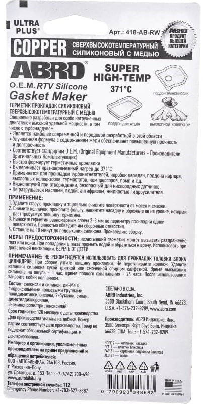 Герметик прокладка медь ABRO 85г 418ABR