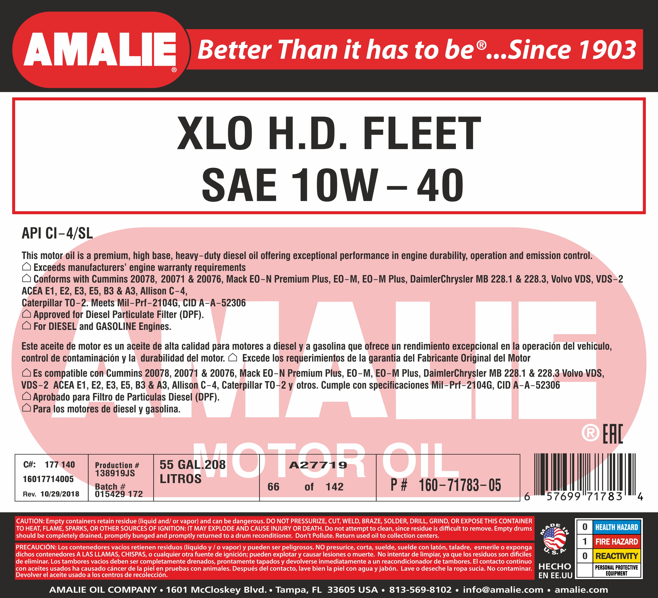 Масло моторное AMALIE XLO HD 10w40 1л розлив из бочки