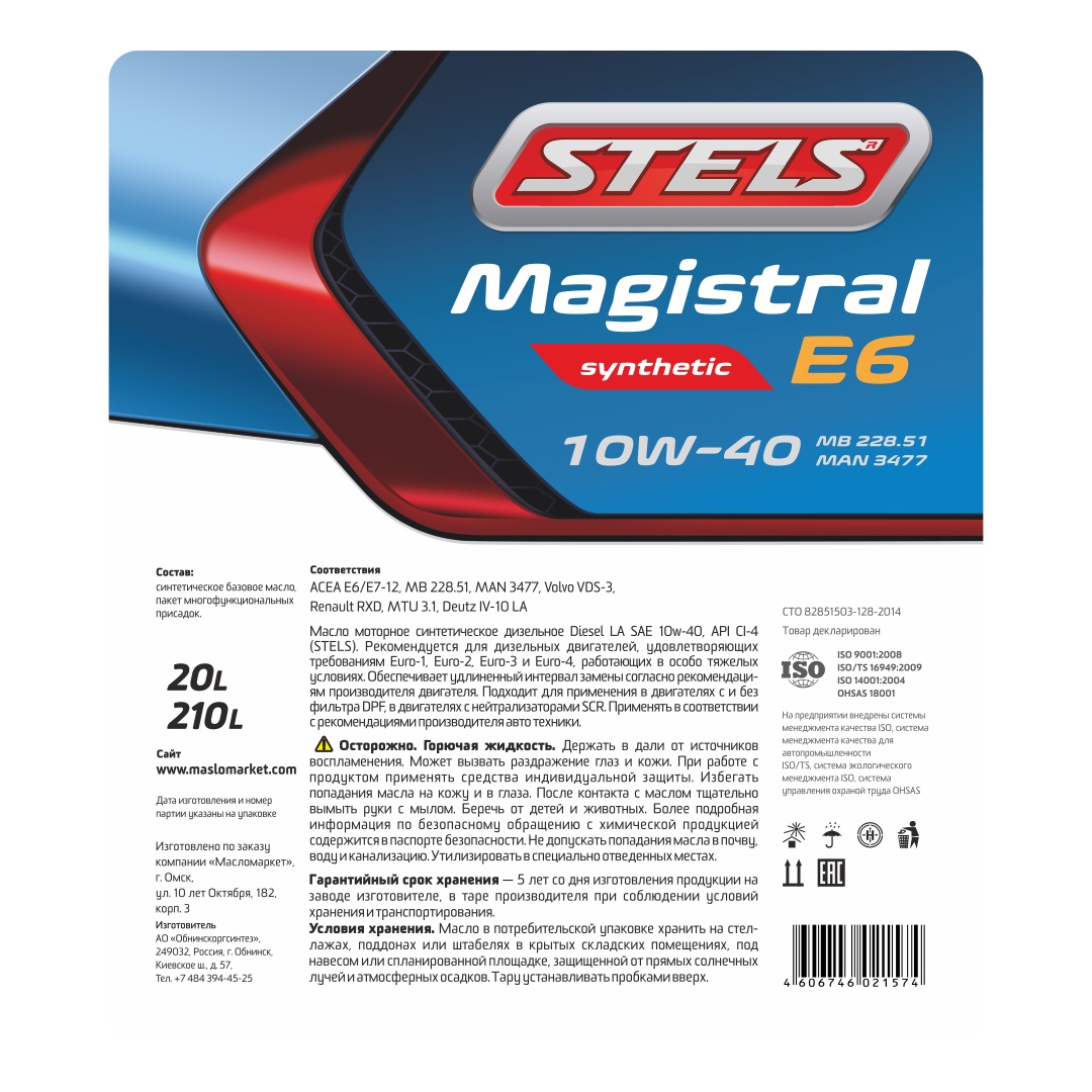 Масло моторное STELS Magistral E6 10w40 1л розлив из канистры
