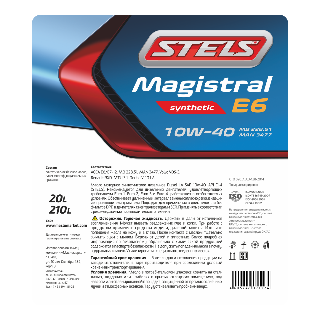Масло моторное STELS Magistral E6 10W40 1л розлив из бочки
