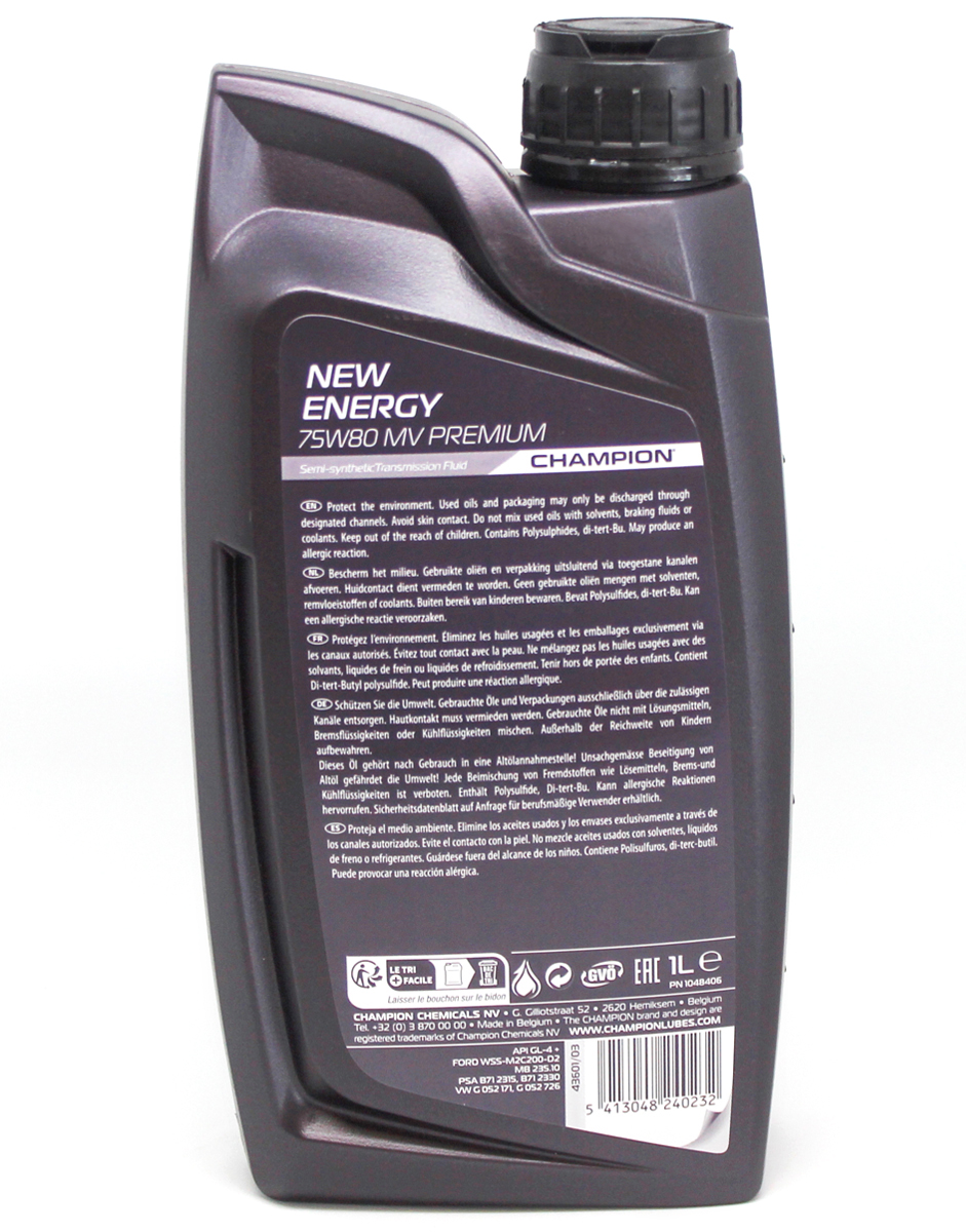Масло трансмиссионное CHAMPION NEW ENERGY 75W80 MV PREMIUM 1л