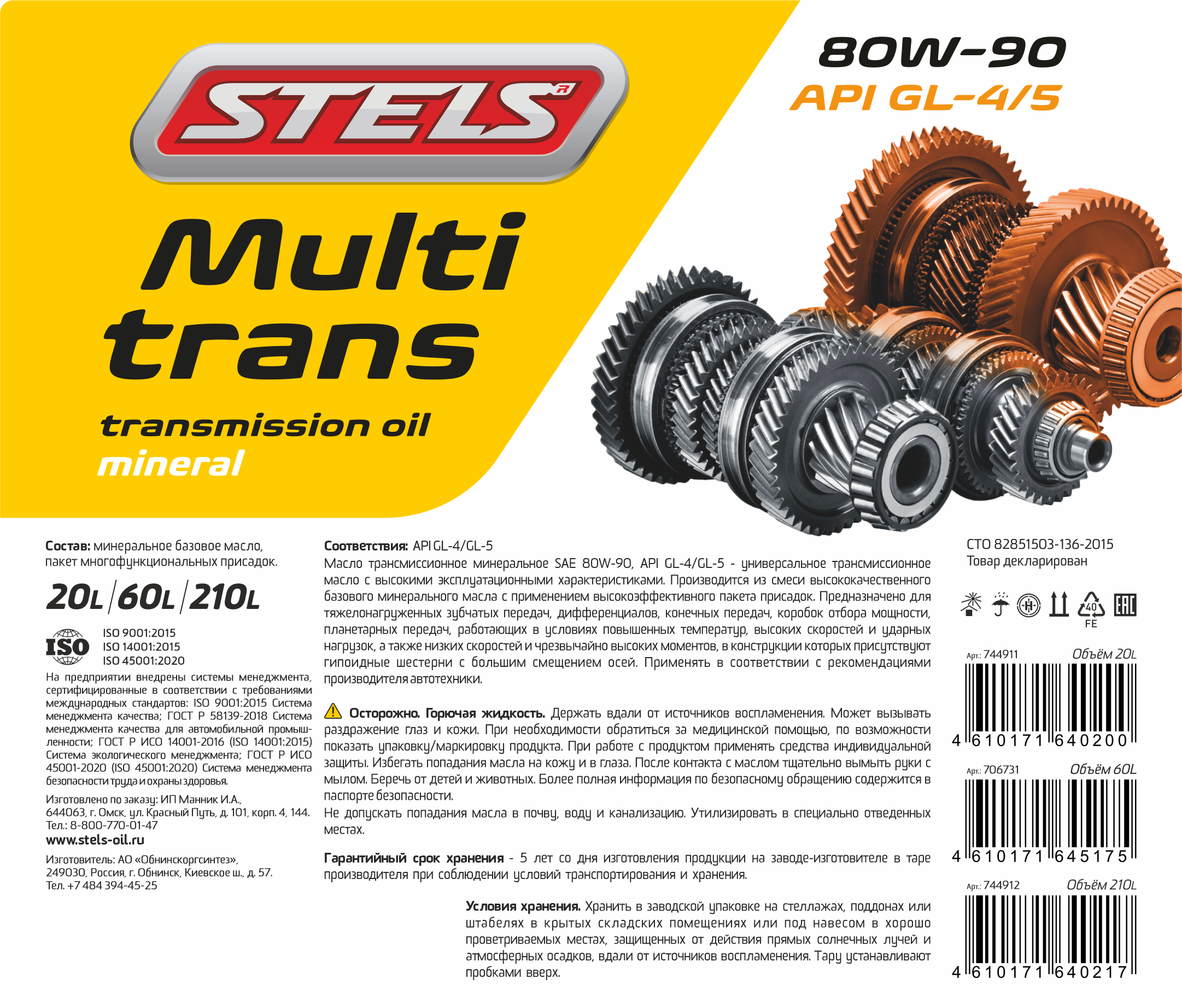 Масло трансмиссионное STELS Multitrans 80w-90 GL-4/5 60л